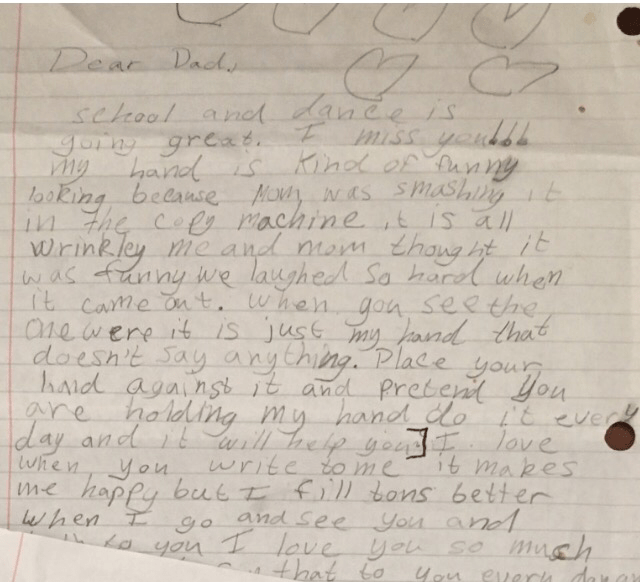 “When you see the one that is just my hand that doesn’t say anything, place your hand against it and pretend you are holding my hand. Do it everyday and it will help you.”
